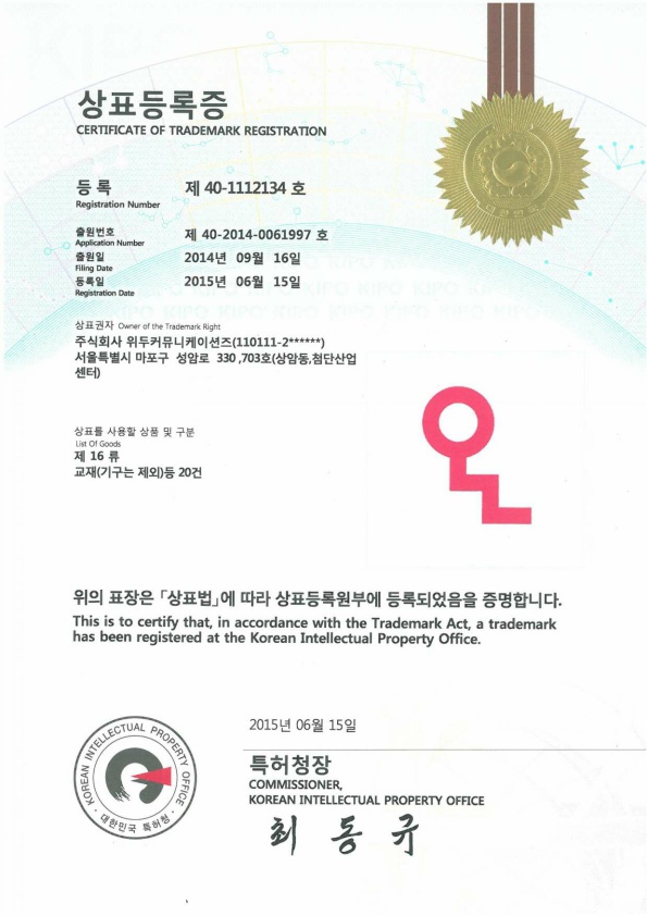 [Korea/Trademark] OLL 16 Class 페이지 정보 작성자 WeDu 댓글 0건 조회 4,391회 작성일 19-06-04 10:46 본문 2015-06-15 Trademark 40-1112134 16 Class List Previous[Korea/Trademark] OLL 09 Class 19.06.04 Next[Korea/Trademark] OLL 41 Class 19.06.04