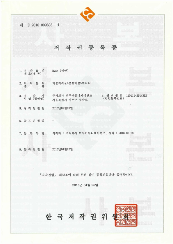 [한국/저작권] 리안 페이지 정보 작성자 WeDu 댓글 0건 조회 4,356회 작성일 19-05-30 19:08 본문 2016-04-22 저작권 C-2016-009838 리안 / 미술저작물>응용미술>캐릭터 List Previous[한국/저작권] 아리스 19.05.30 Next[한국/저작권] 나무트 19.05.30